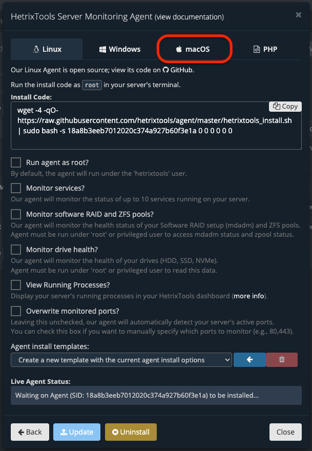 This guide will show you how to install the HetrixTools Server Monitoring agent on your macOS server or PC.
