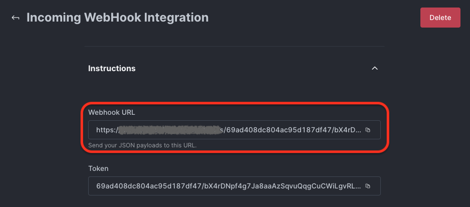 5) You will then be presented with the ‘Webhook URL’, which is what you will need to input on our platform in order to get our notifications on your RocketChat platform. Copy the ‘Webhook URL’ as you will need it for the next steps of this guide: