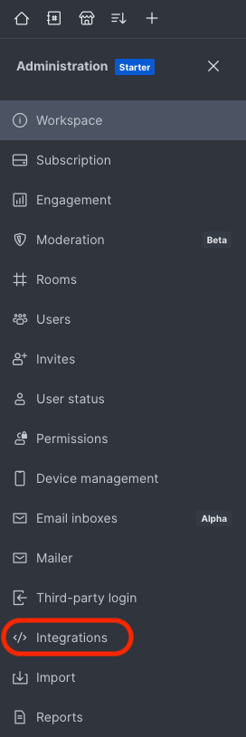 2) Then click on the ‘Integrations’ link in the ‘Administration’ menu: