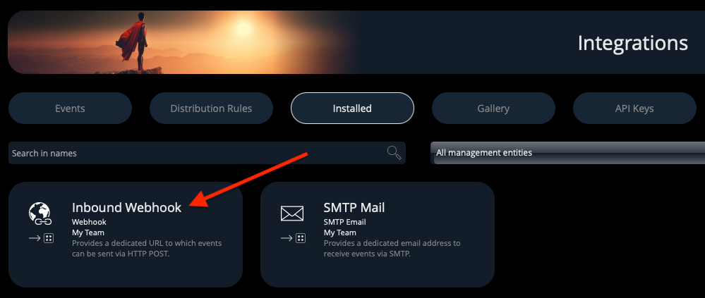 Now, on the page containing all of your installed Integrations, locate the “Inbound Webhook” one, and click on it: