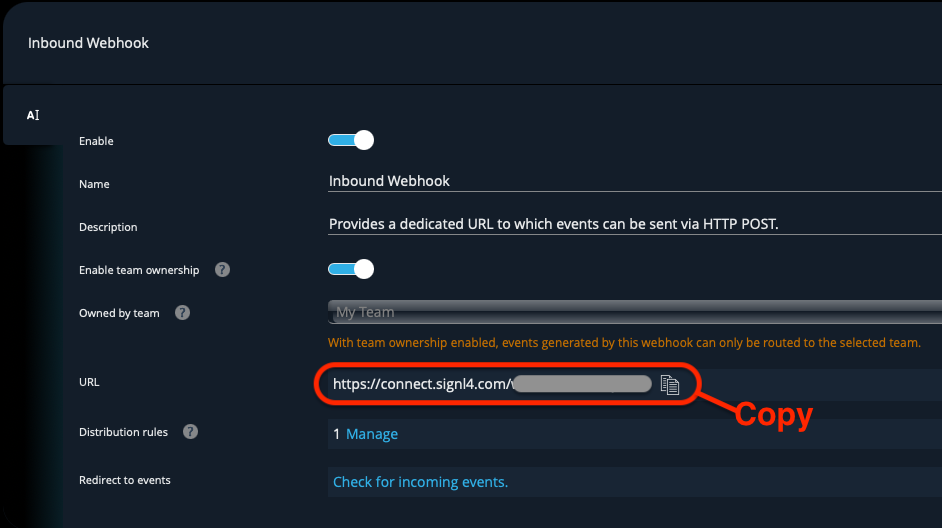 Here, you’ll need to locate your webhook URL and copy it, as you’ll need it in the next steps on our platform: