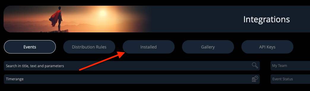 Then, on your Integration panel, click on the “Installed” button to view your installed integrations: